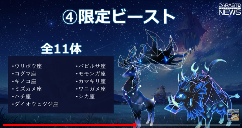 画像に載せましたが、新ビースト(ビースト座)11種が追加だそうで。モデル使いまわしとはいえ属性も違ったりするので、ビースト鑑賞勢としてはしっかり制覇したいところです。