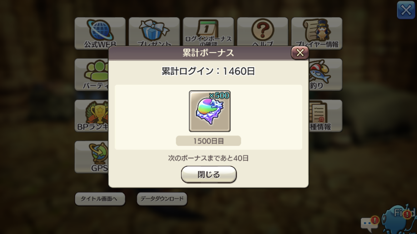 プレイ開始が2019年1月19日・・・、なので皆勤賞とは言えないもののここまで続くとは思いもしませんでした。立派な古参!!!!