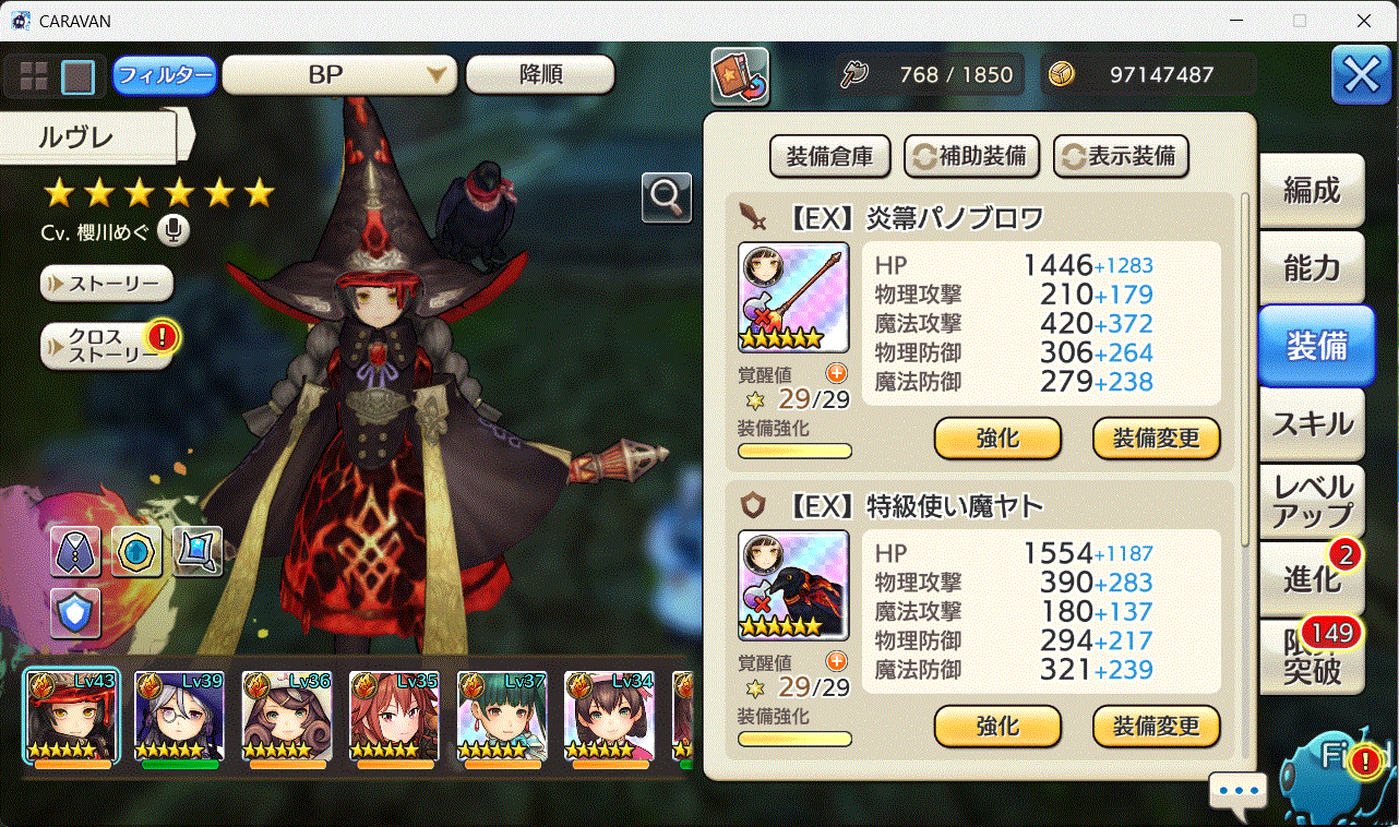 (衣装目的なのでオーブロンやアルルカンなど弱キャラも全部☆6まで進化)