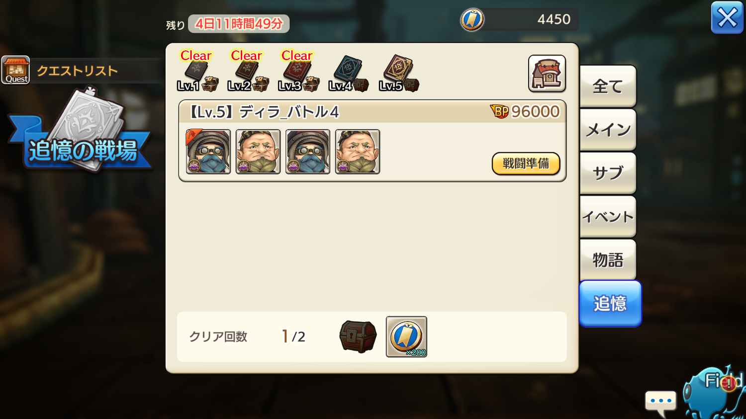 追憶Lv5はクリア関係なくお試しで誰でもできるようになってます。