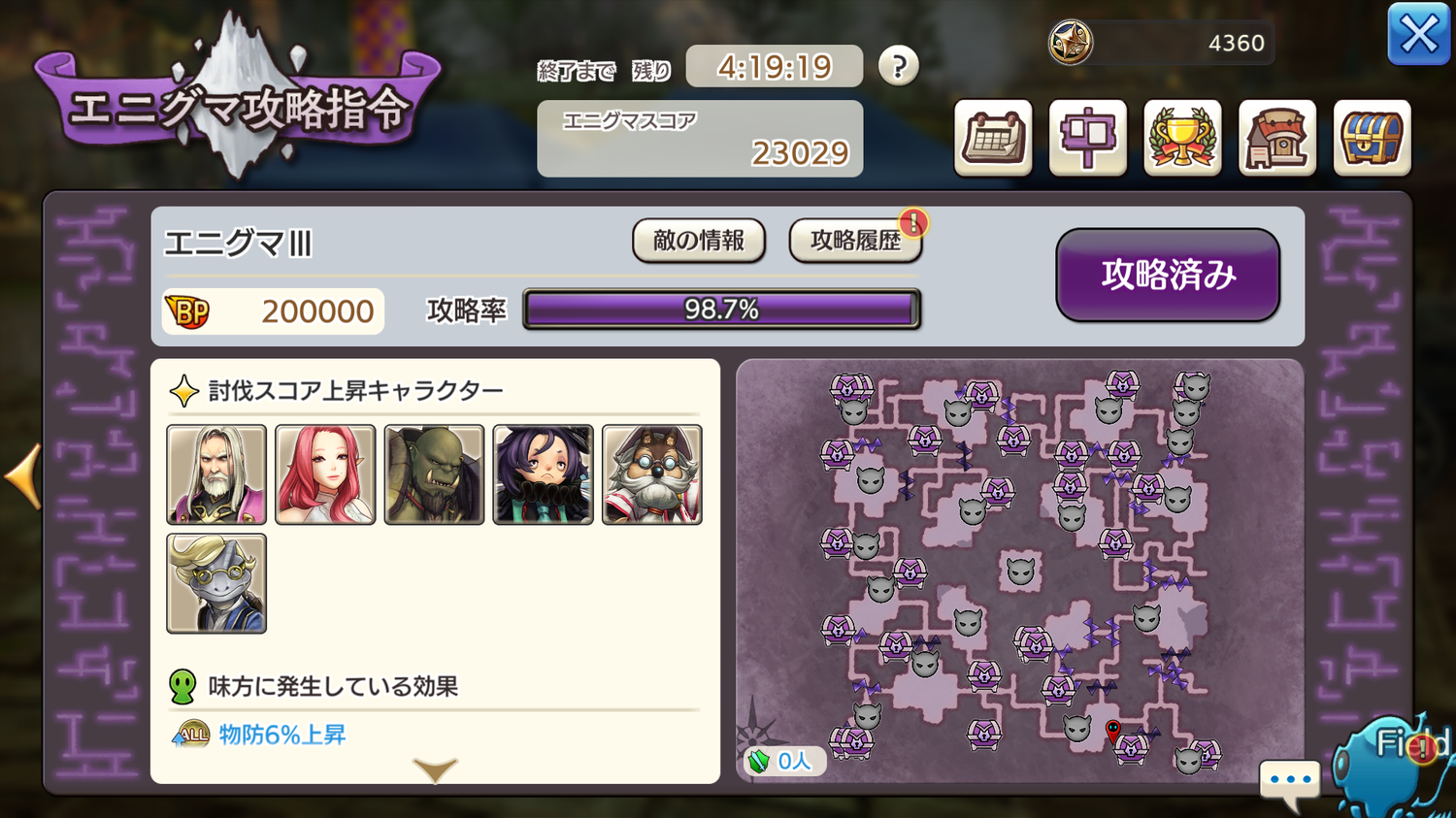 討滅やエニグマ、勢力戦に必要なキャラを全く育成していなかった。