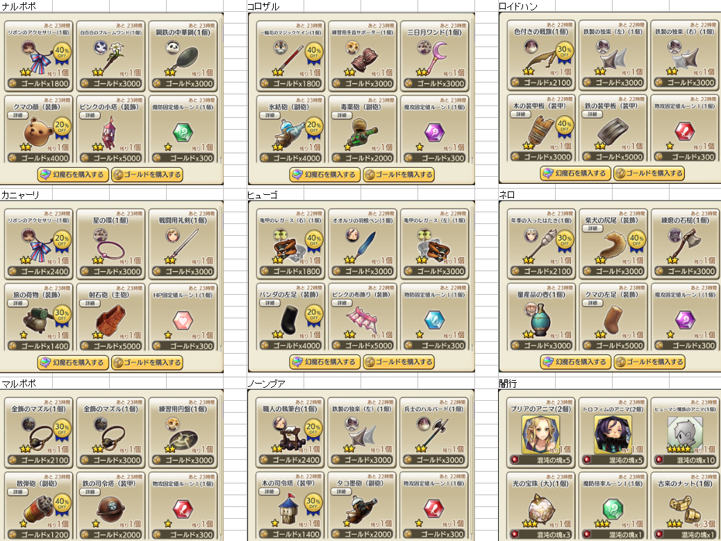 4/21 装備商人一覧