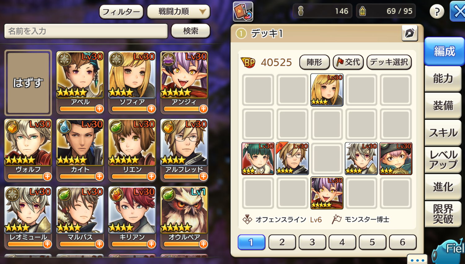スキルに関してはすべてを上げているわけではないですが、汎用性の高そうなものを中心にある程度までにはしています。装備に関しても☆3や4が中心ですが4であれば軽くルーンは付けてしまいます。