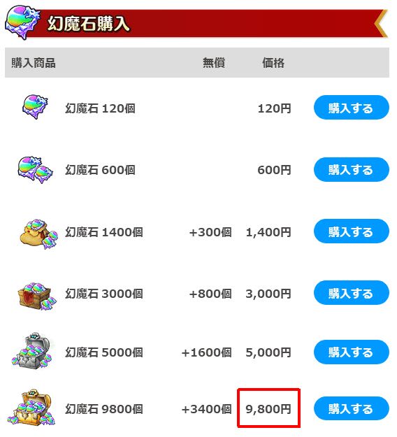 9800円+120円+120円=10040円 で13440幻魔石か、