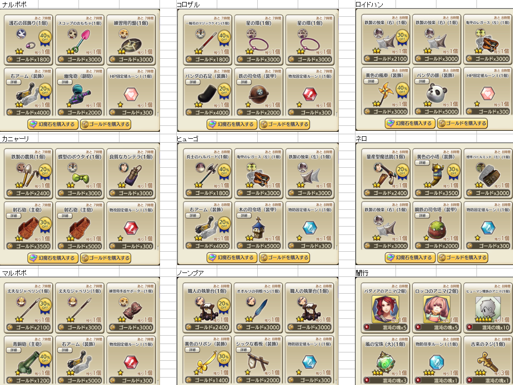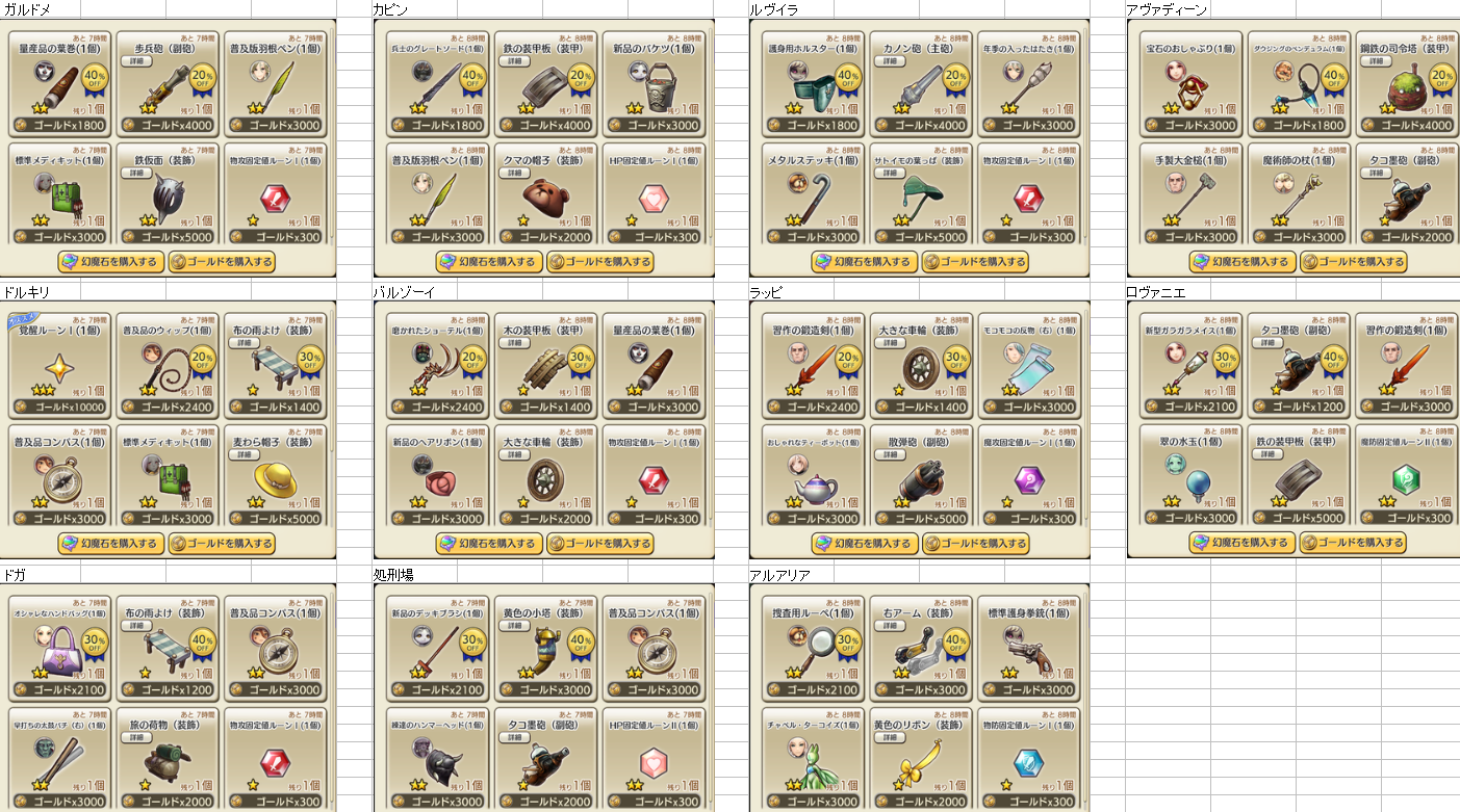 3/09 メンテ後 装備商人一覧