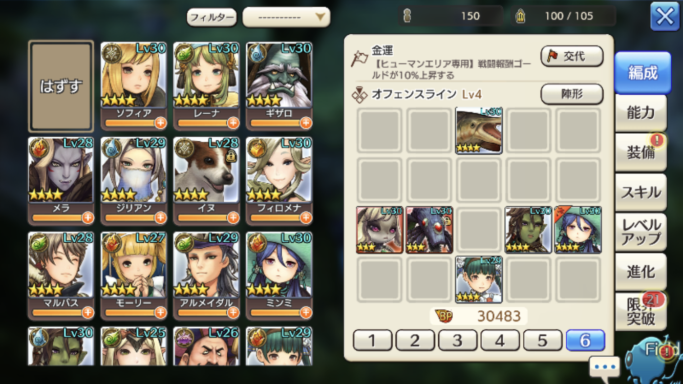だったら必殺ダメ減のソフィア。と思ったら、光属性なのでダメージ食らいまくり。うちのモーガでは回復も魔法防御バフも不足。