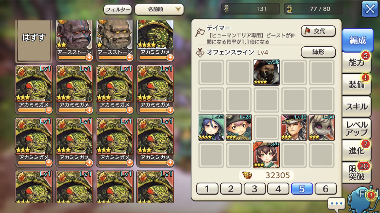 ここまではよく見るメンバー。ここに上から目線のウサギさんが入ったり、タンバリン叩く子が入ったり、ウロウロしちゃうけどバフも回復もこなせる便利な学者さんが入るのですが、それでもボグスが耐えられない。
