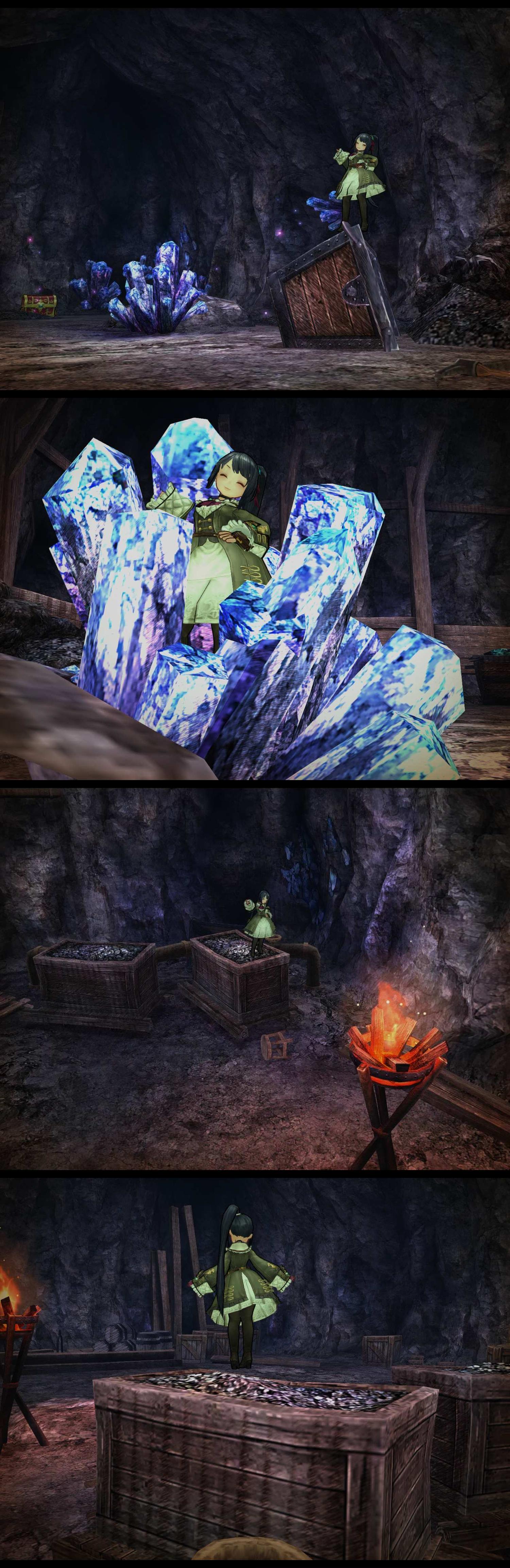 このダンジョンは、クリスタル柱のオブジェがいくつか置いてあって綺麗です。