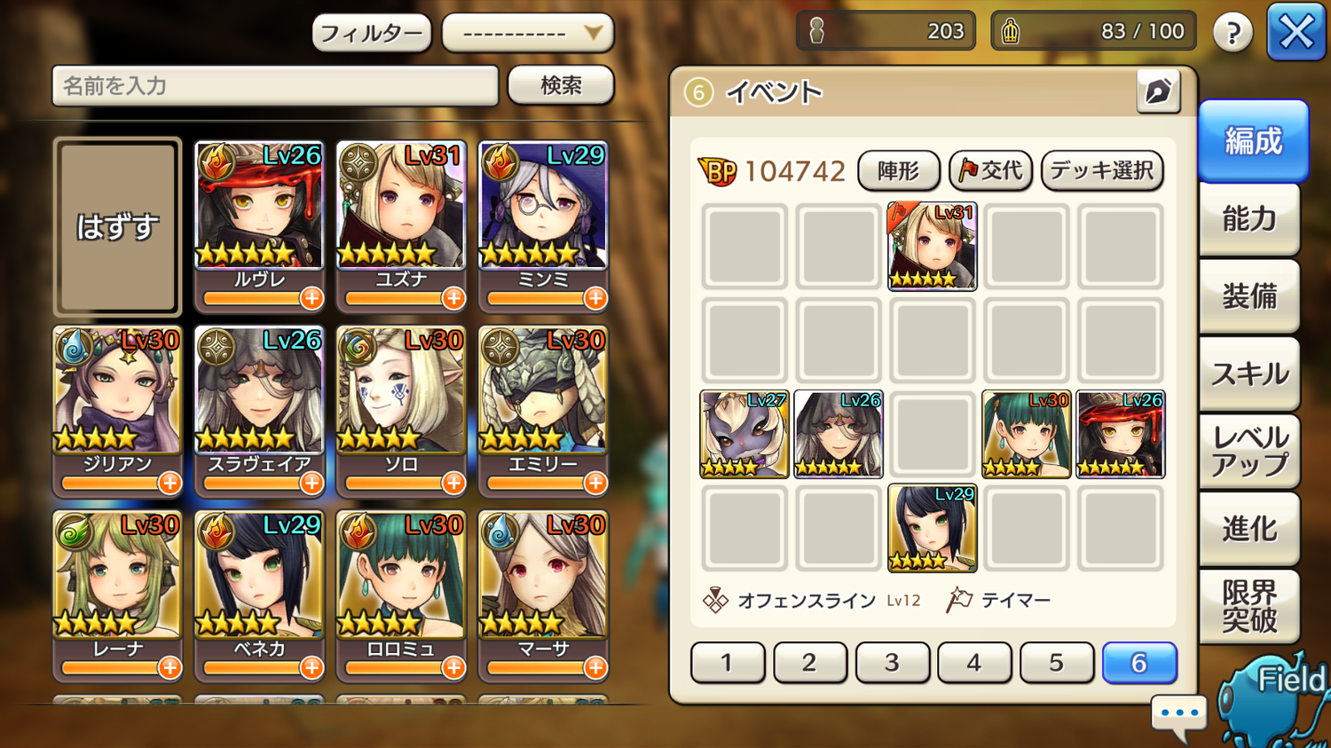 ☆5サブ:キリアン、マルマ、リリ、エーリッヒ、ロンヴァルド、プリア、ミリア、ロディ、ワウガガ