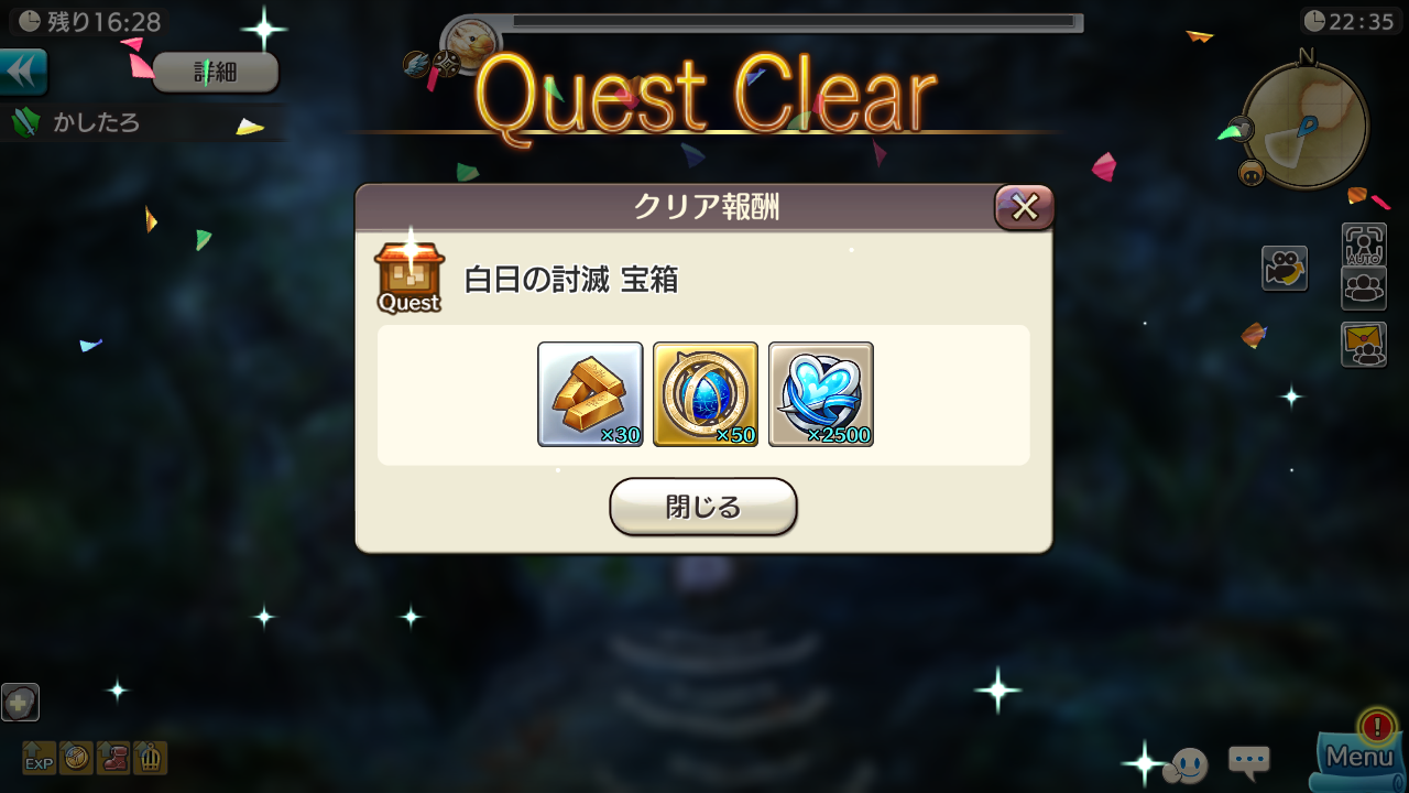 宝箱:金塊(中)×30、経験値オーブ(5000)×50、ホワイトデーコイン×2500