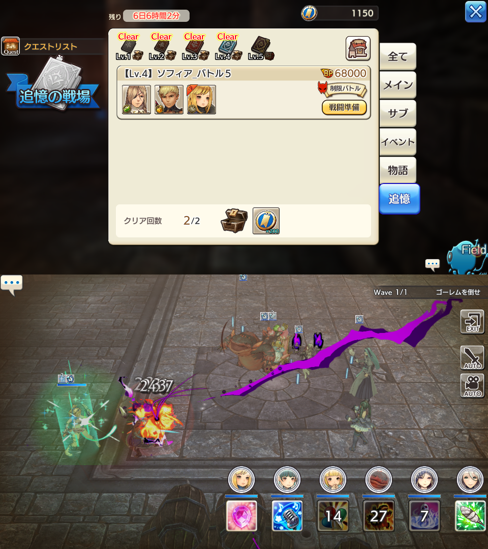 追憶に奪還が出てきたのでクリア当時と同じメンバーでチャレンジ。