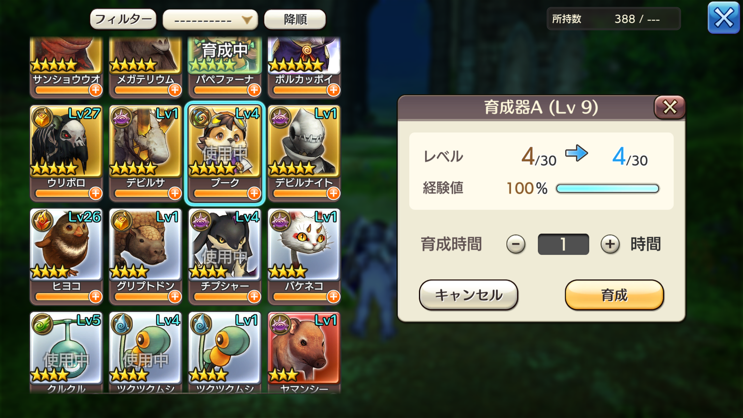 プークを育成機に入れても経験値が貰えない・・・みたい