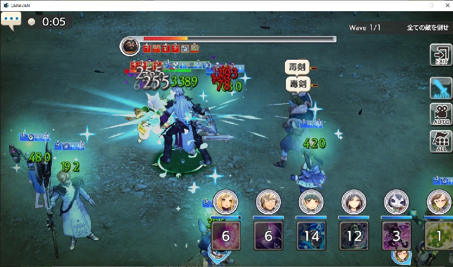 一人ずつ完全に削ってではなく、残り1/4まで削ったら他の敵にターゲット変えて、はみ出たASで削ってもらいました。