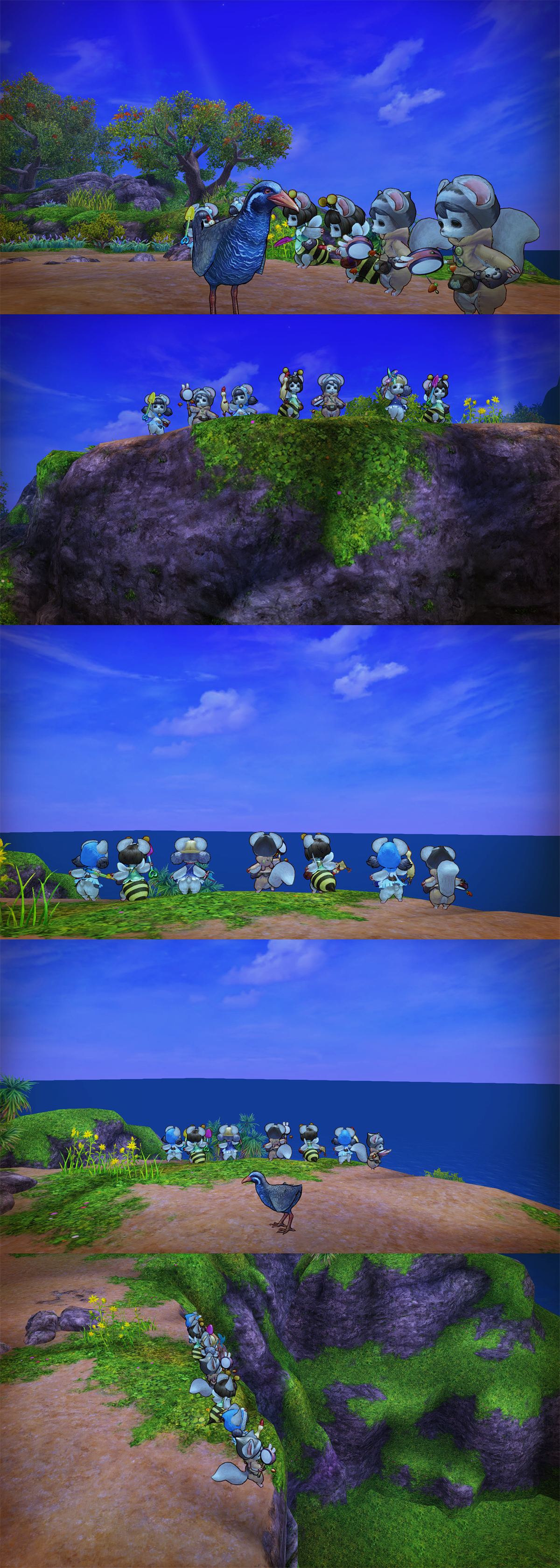 探検隊で並んだり、見つけた遺物に乗ってみたり。。