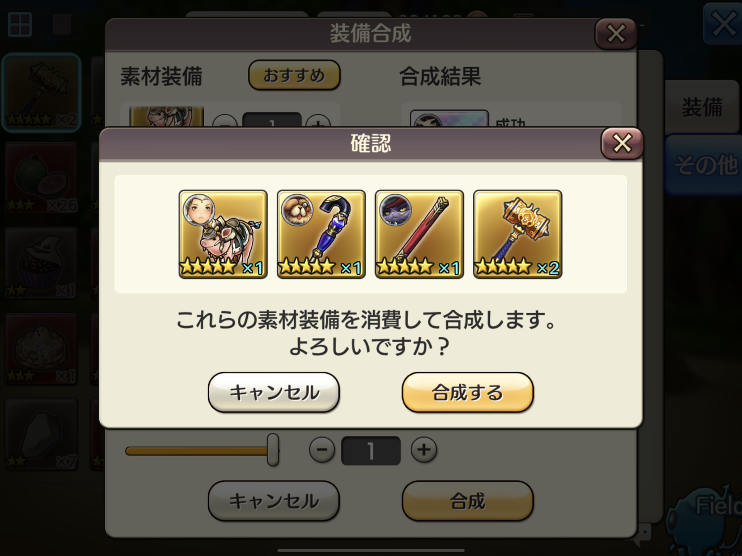 ⋯装備ガチャ回してないから生贄星5装備3個しかない。キャンペーン?で貰った金槌2個と無理矢理子豚ちゃんに乗った少年王子から剥がした星5も使う窮地なんだぜぇ~