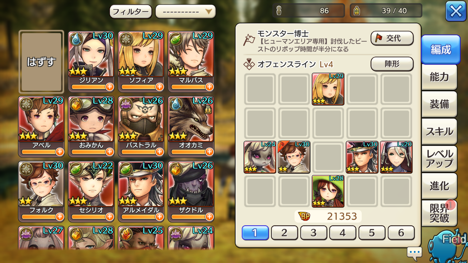 ∟アクティブスキルLv3、物防Lv2