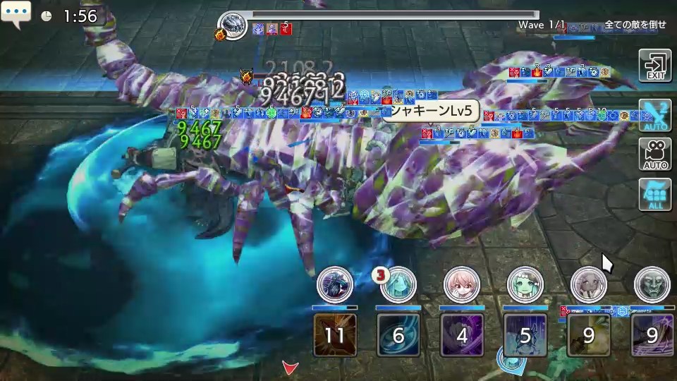 手持ちの平凡なザリガニ(Lv40、ダメ減22%、スキルMAX)とEXウンディーネを入れた6キャラ編成でやってみました。