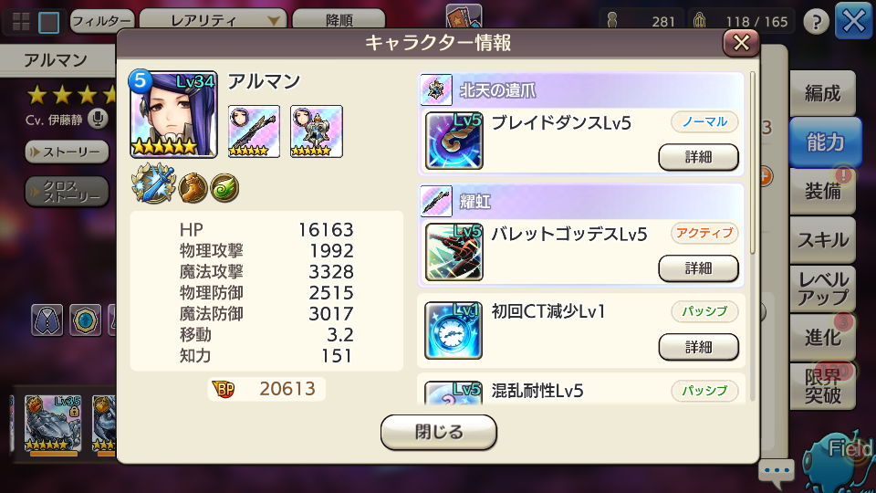 2024/12/23 19:29 公開 アルマン解放・即戦力へ 雑日誌 大分前からチビチビ変換機で貯めて来たアニマ200個でアルマンを解放!!ファフナーに次ぐ貴重な風属性キャラだから、即行で大金つぎ込んで最低レベルにまで育成。また新しいキャラに大金つぎ込んで、肝心のメイン戦力育成がまた先送りに・・・・。何やってんだあああああ!!!!!!! テイル リンクをコピーしました 前の旅日誌 旅日誌一覧 次の旅日誌 コメント 1 世も末涼子 ID: 7rx4h2jfehxu かなり育成すればディモに使える。かなりね。 2024/12/24 20:43