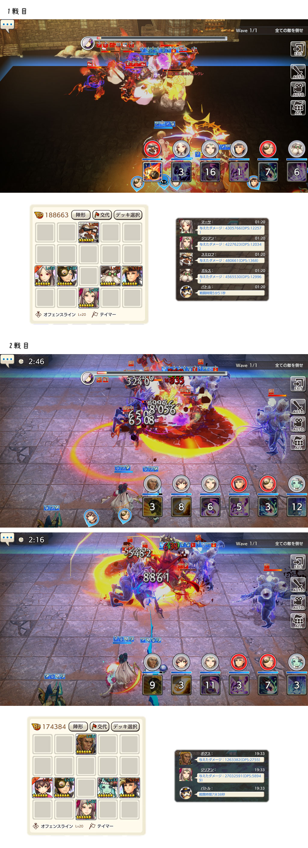 成功時はルヴレの大技とアルメ無敵がちょうど良くタイミングが合って、アリアロいなくても間に合いました。(アルメは両手☆5)
