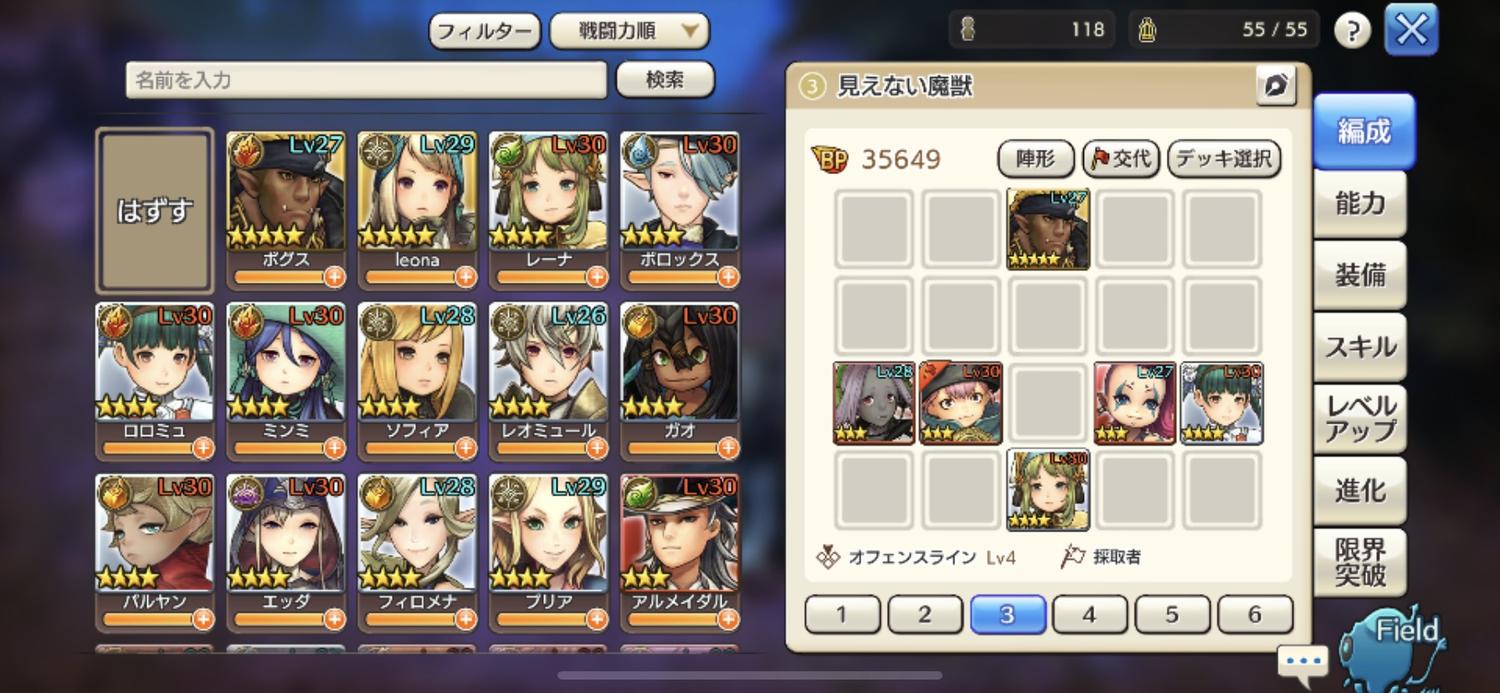とりあえず陣形の写真載せておきます。強い方、ぜひアドバイスを…(タンク不在の陣形はいかがなものか…)