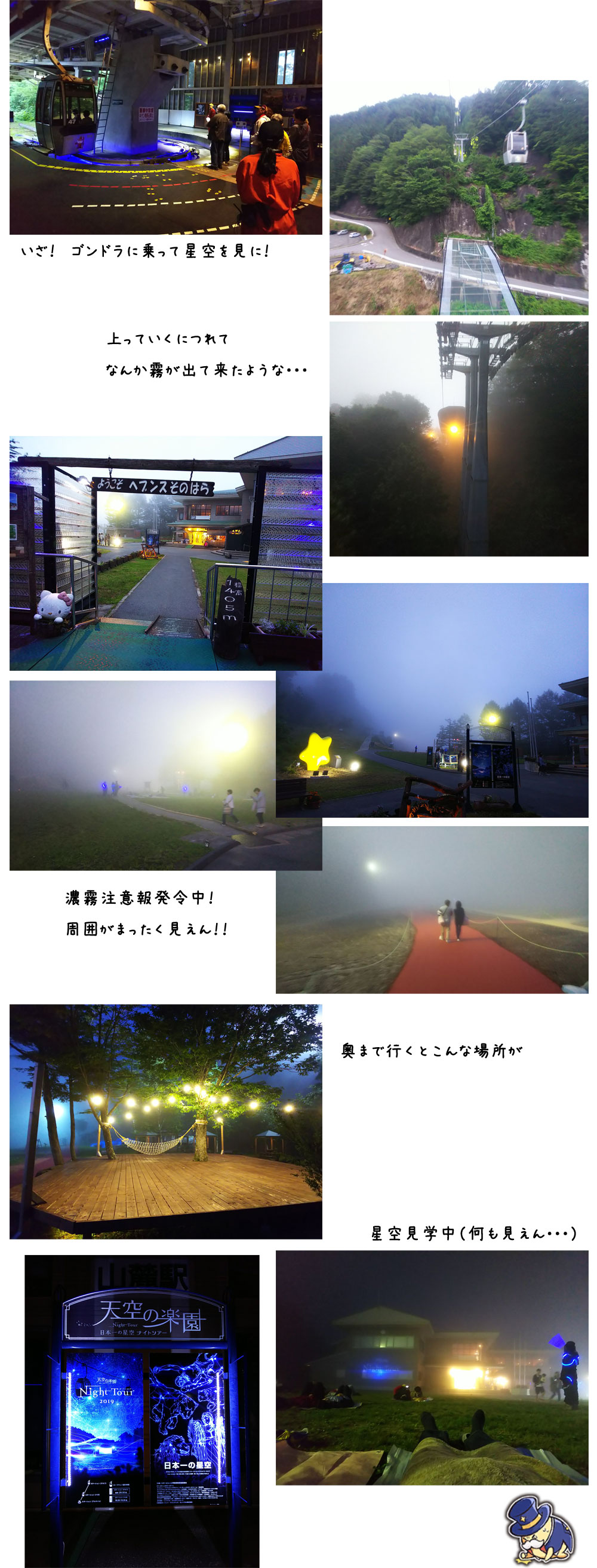 星空が見れなくて残念でしたが、辺り一面霧がかかってるのは初体験で、幻想的で面白かったです♪