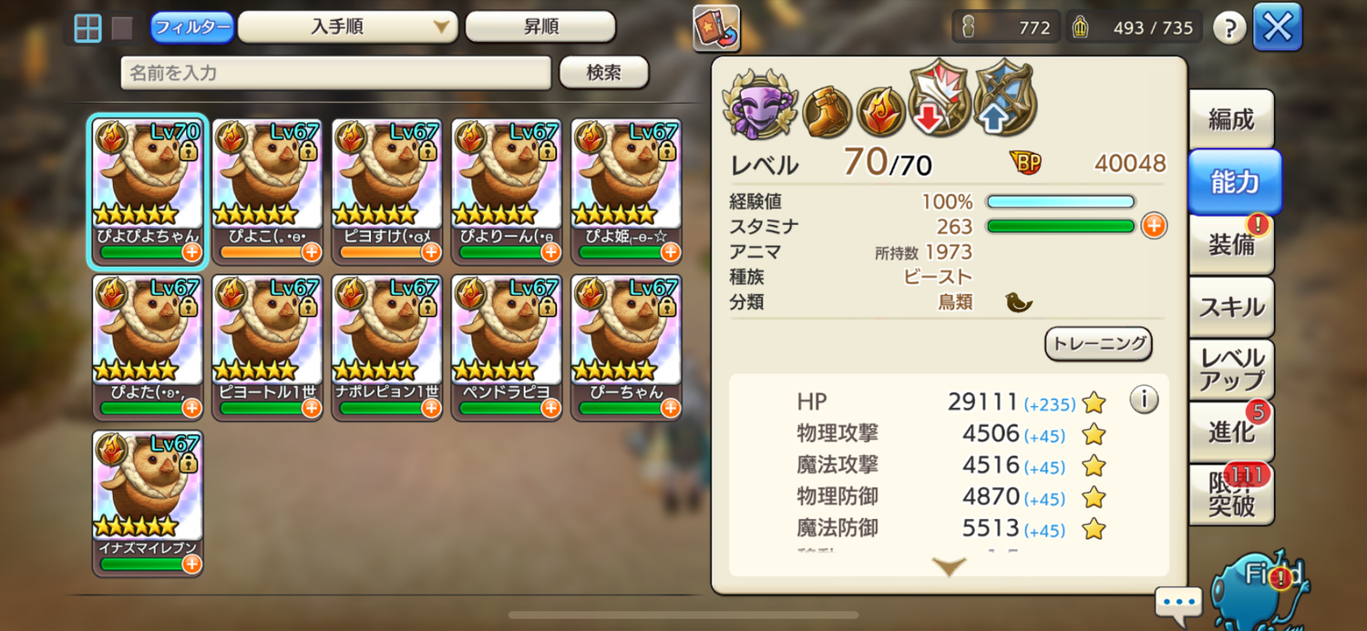 なお私の好きなキャラクターは、スクショの通りひよこなんですけども、