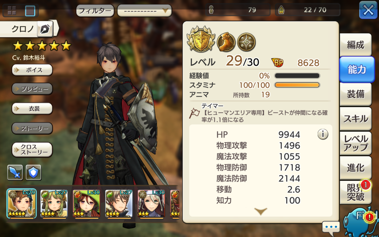 PT・装備・スキルレベルは以下の通り。 ☆…メイン ★…サブ