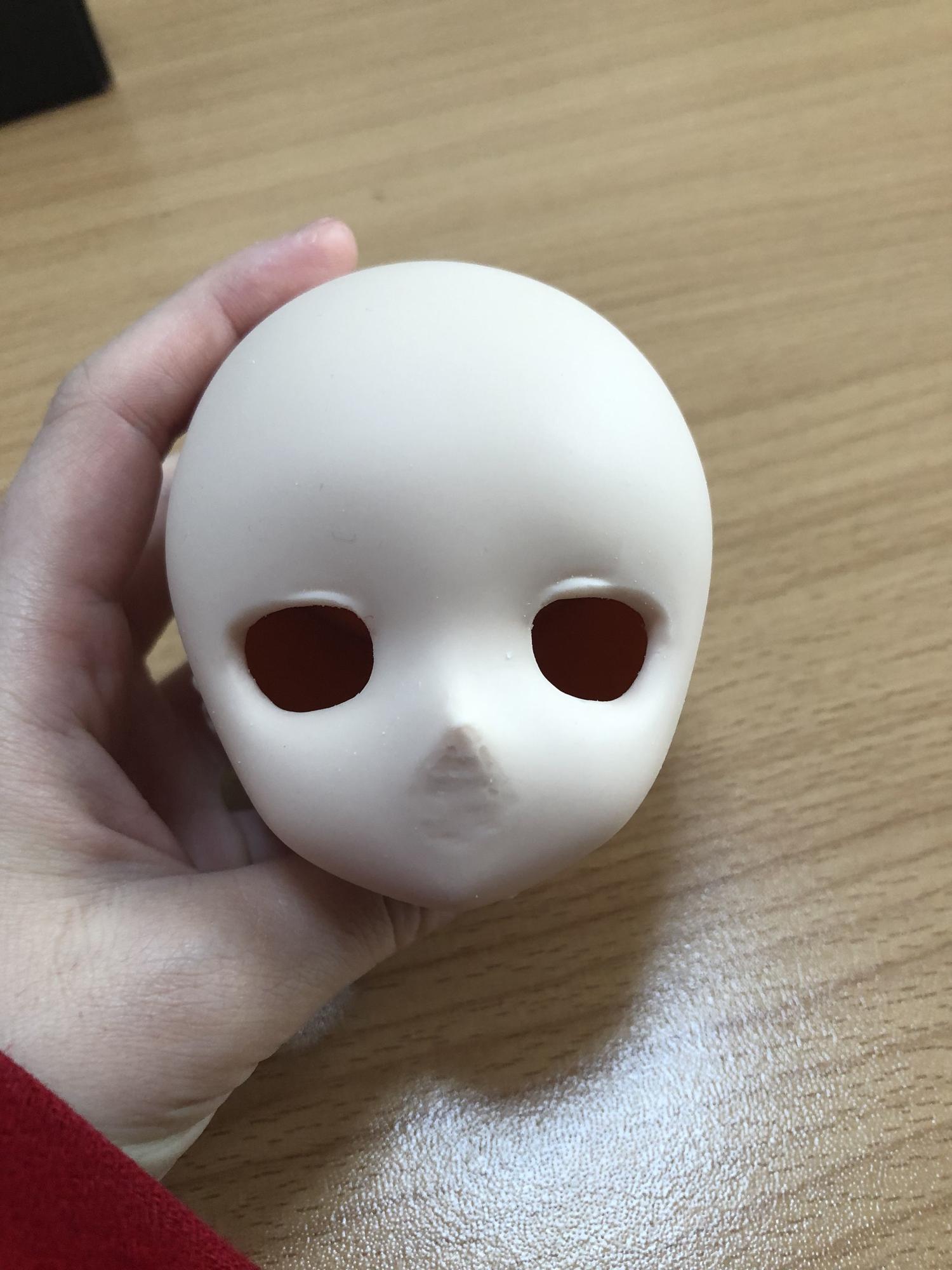 DDH-01、鼻が高めで口があって目がタレ目なのでジト目、鼻低にするために削った。ジト目っぽくなってきた。描き口にする予定だから口も削いだ。2度目になると大胆に削れるようになるね。口はヤスリで平らにしようと思うからまだボコボコ。友達にカスタムの道具貸したままだけどヤスリたいし新しく買っちゃおうかなと。