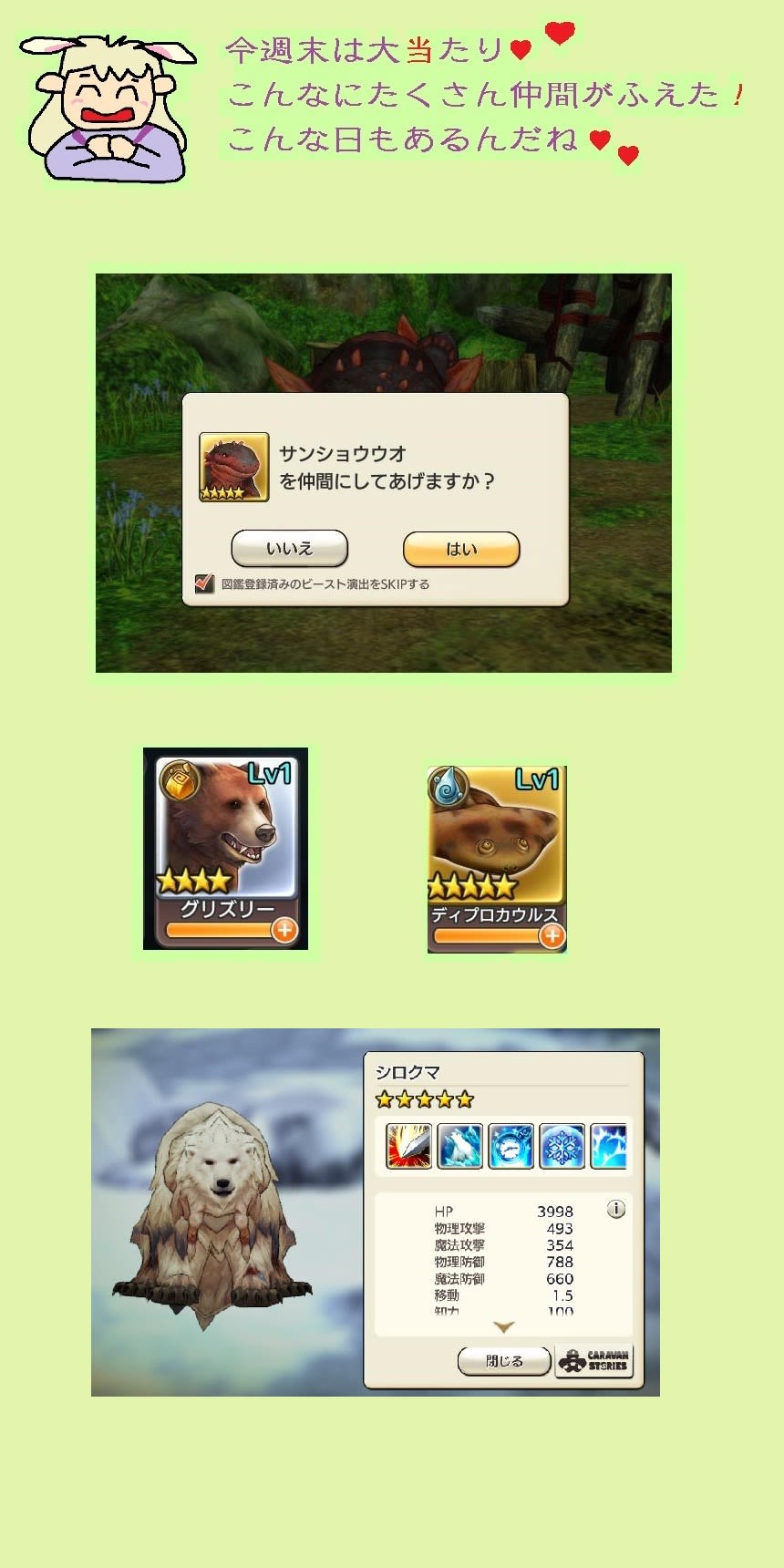 幸せのあたり日だとおもったら、今まで捕獲できなかったテイムの難しいビーストをどんどん仲間にすることを、おすすめします!