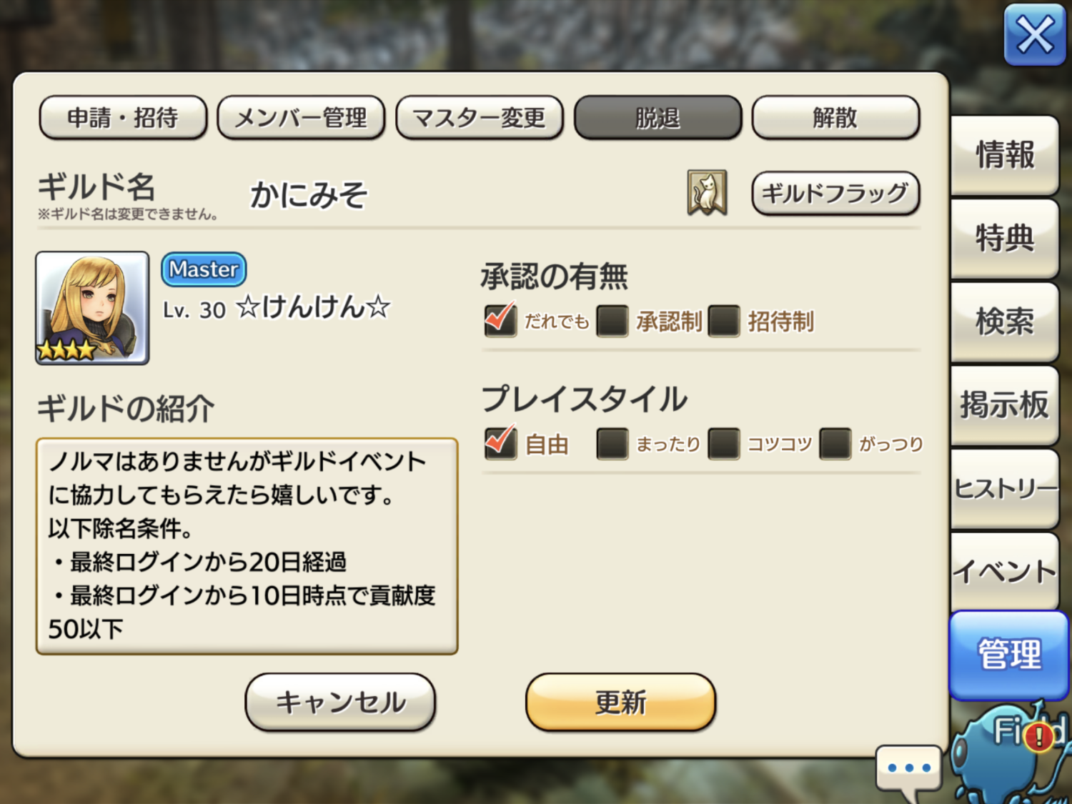 以前、バグではないけどギルドマスターにとっては大きな問題なので問題提起として不具合フォーラムに書いたけど、こちらにも。