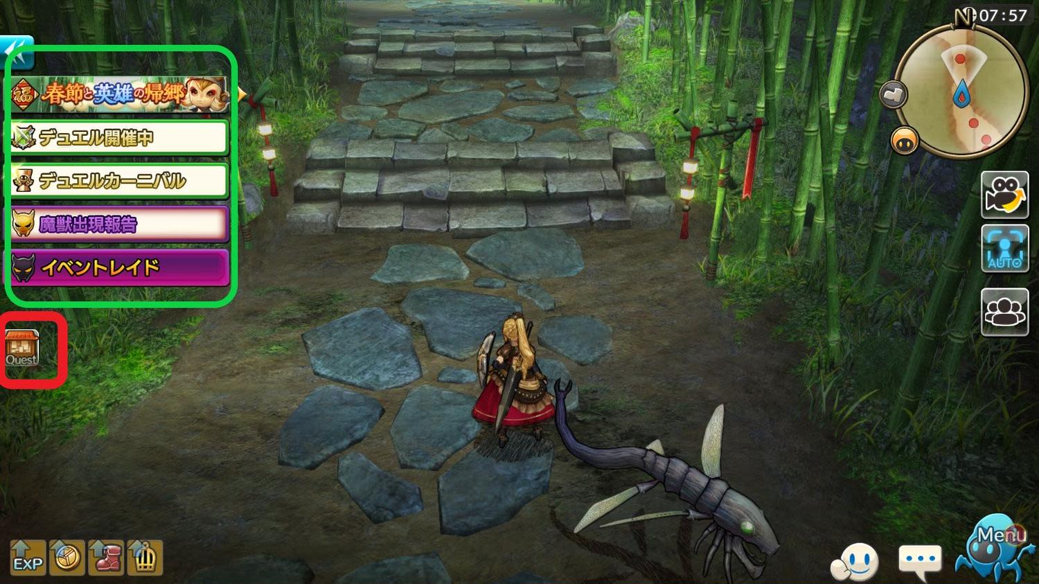 下段「Quest」以下が小さいアイコンかつ、1個目の[Quest]より