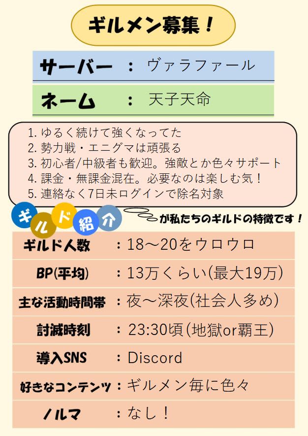 古参は強い人が多いので、イベの強敵などはギルド内で協力して倒せちゃいます!