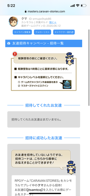 キャラバンレベル16以上の方で、相互招待してもいいよって方がいたら
