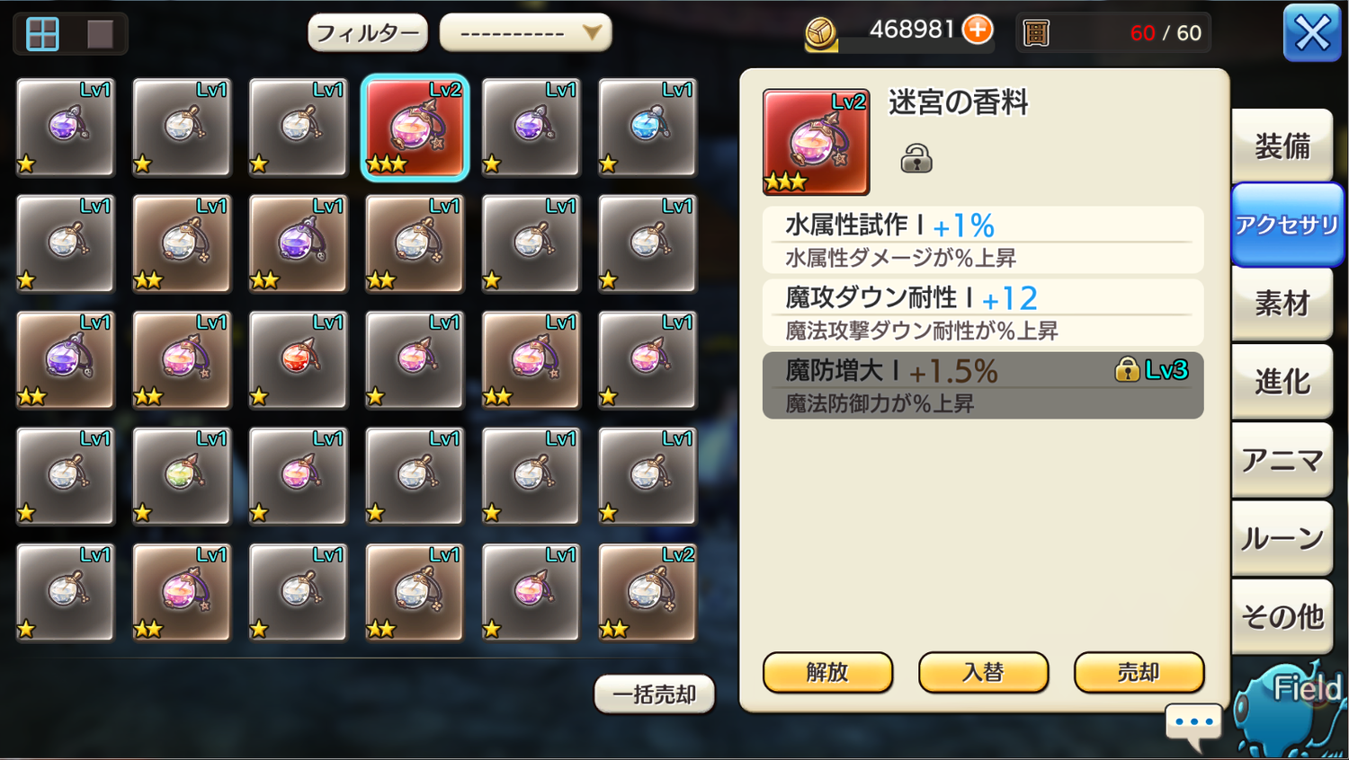 アクセサリ入れ替えの対象が一行分しか表示されません...。
