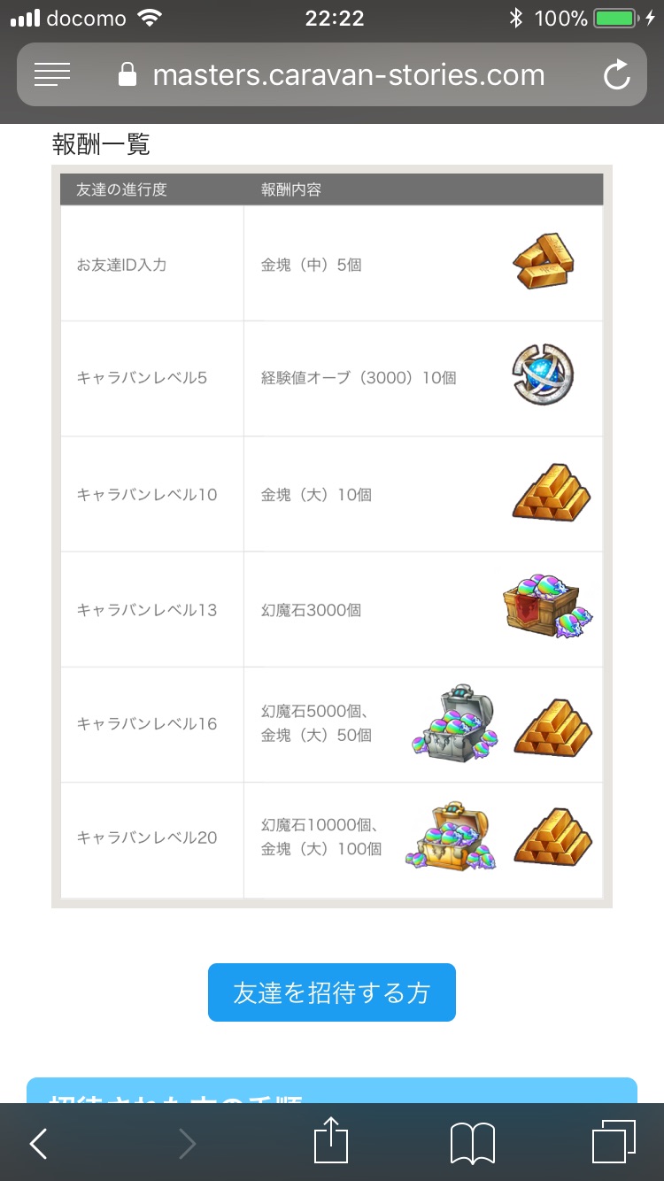 但し、招待した人がIDを入力してくれたら相手のキャラバンレベルに応じて