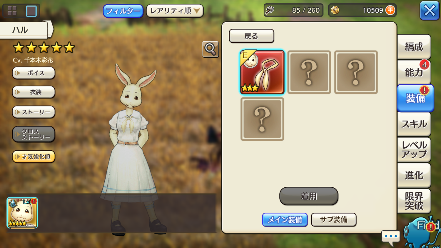 ハルの☆6メイン武器を装備すると表示装備画面に何も表示されなくなる。