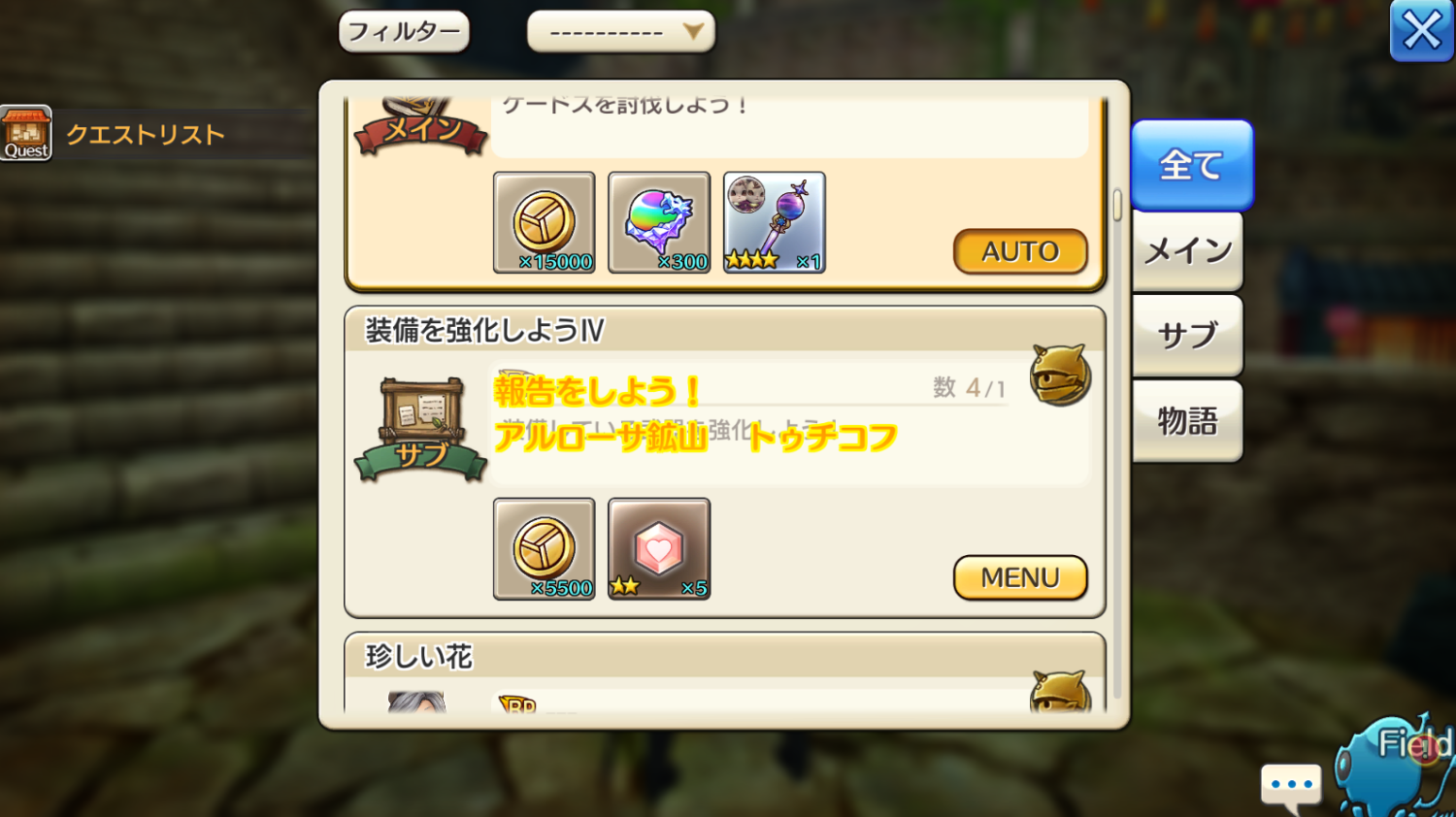 装備の強化をしようⅣ 万事急須 ID: 9ipbfkirgwhd スレッド作成者 2018/07/10 19:19 装備の強化をしようⅣの達成報告をするための自動で依頼主まで行くボタン(があるはず)の場所を押すと、装備メニューにとびます。