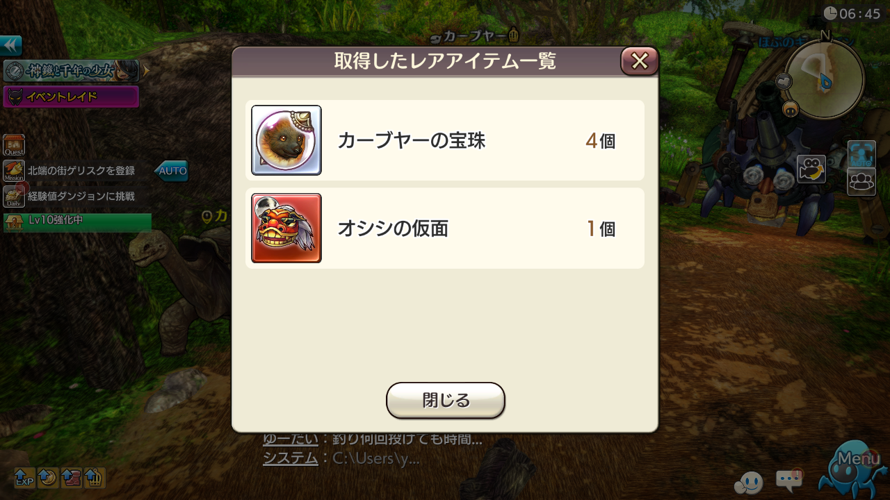 カーブヤーからオシシの仮面を入手できる ぼぶ ID: 2qdq5szgazu5 スレッド作成者 2019/08/17 14:23 カーブヤーを放置狩りしていたら、オシシの仮面(イヌ用★3メイン装備)が手に入りました。