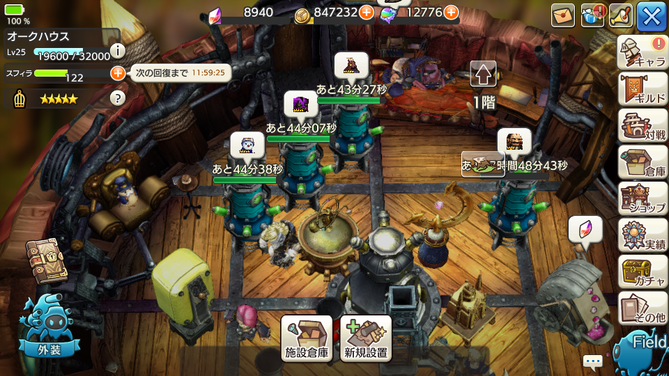 時間経過は左上のスフィラの表示が参考になるかと思います。